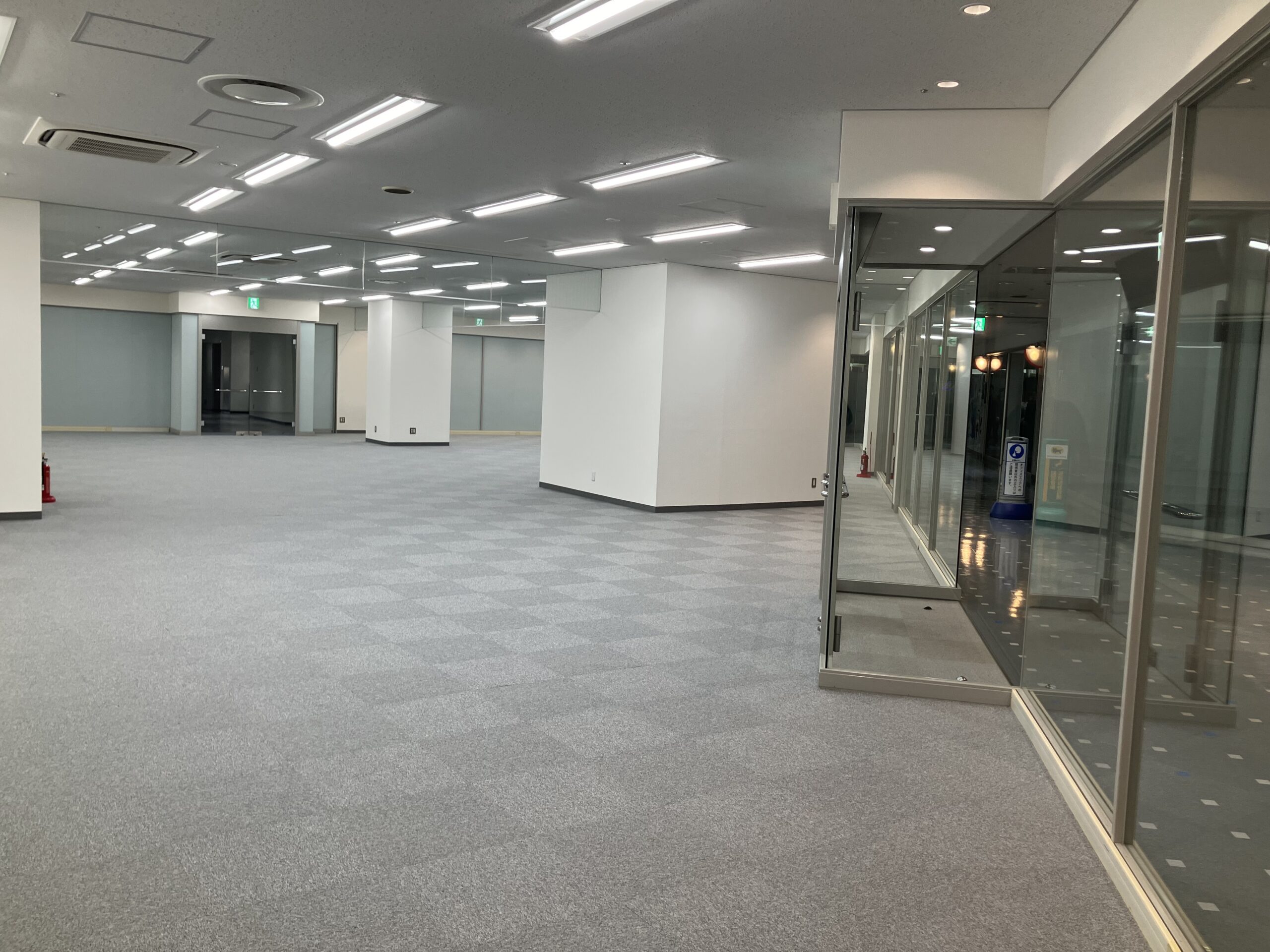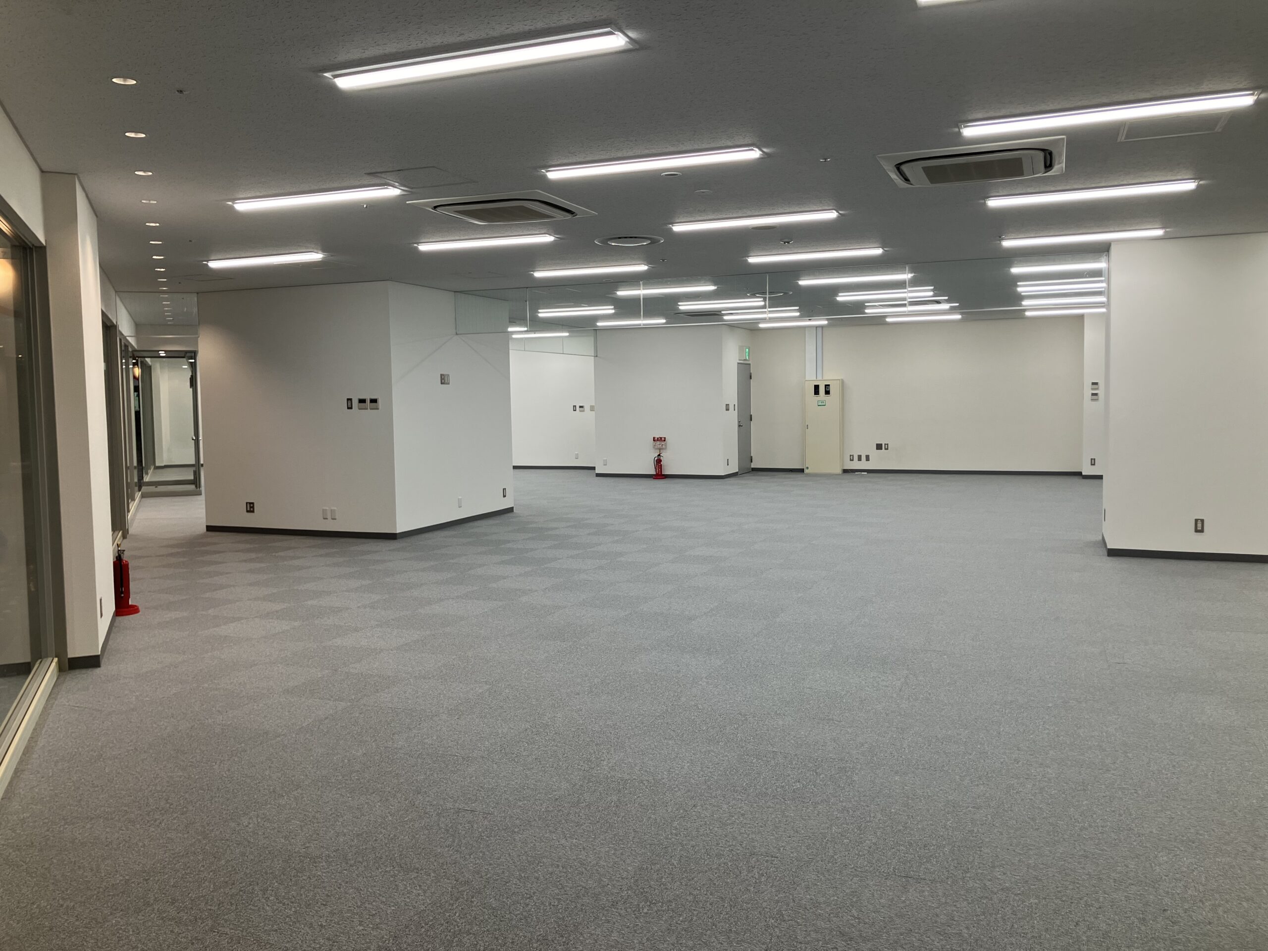 3辺のうち、2辺がガラスの開放的なお部屋で、ショールームやギャラリースペースとしてもお使いいただけます。